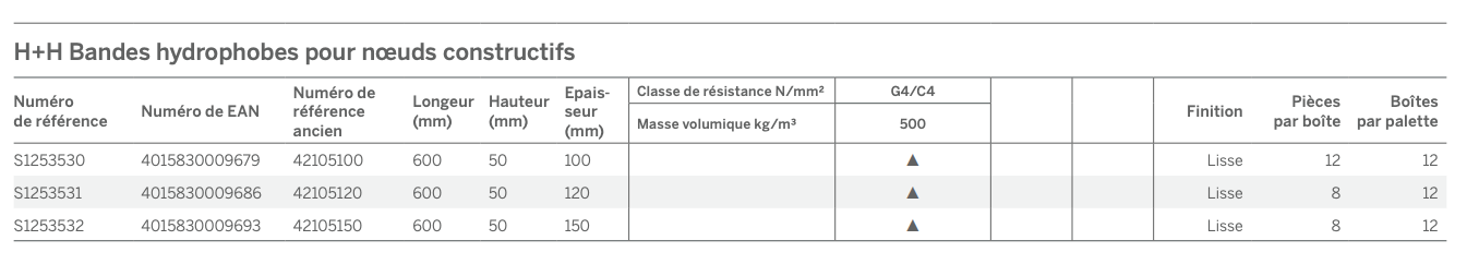 H+H Bandes hydrophobes pour nœds constructifs